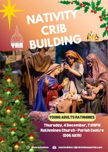 You are warmly invited to help build the Nativity Crib with Young Adults Rathmines — a meaningful way to prepare a space that welcomes Jesus as we enter the joyful season of Advent. All are welcome to join us afterwards for fellowship and socials!